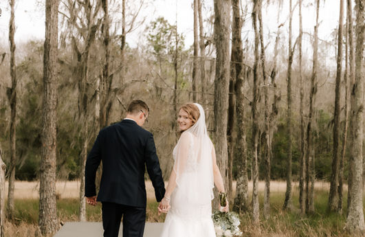 Our Venue is not simply the building. The Barn is set on a picturesque backdrop that showcases Florida's natural beauty. Acres of pasture provided a buffer from the outside world and your event with privacy. A wooded creek borders the property on one side and sunlight peeks through the oak canopy every afternoon providing ample gorgeous golden-hour lighting. There is a natural cypress pond behind the Barn, which offers a unique background for your event, and is an additional ceremony location with a built in platform. Additionally, there is a large field with a beautiful oak tree which is used as another ceremony or photography location. In fact, there are multiple scenic areas on the property perfect for a wedding ceremony and photos.